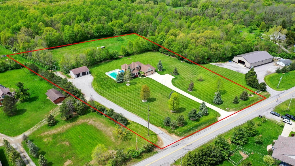 One of Logan County's finest properties on 6.451 Acres with Pool, Pole Barn & 3-Car Garage! This well-maintained 4-bedroom, 2.5-bath home has 2,855 sq. ft. of comfortable living space plus a full finished basement and a concrete driveway! The home features a great room with propane ventless fireplace, formal dining room, kitchen, main-level laundry and owner's suite with custom shower. The kitchen has tile floors and backsplash with oak cabinets and granite countertops plus a breakfast nook and walk-in pantry. Upstairs are the additional bedrooms and a bathroom along with an office/den and walk-in attic space. In the finished basement, there is a family room, game room, flex room and a mechanical room. The home also has a generator hookup. Outdoors is a covered front porch, coy pond, Trex deck with seating, hot tub, and a gazebo overlooking the pool and patio area! The pool is 20x40', ranging from 3-9' deep, with a diving board and vinyl fencing. The 32x40' pole barn has two overhead doors, concrete and electric. There is a 16x24' shed too. Geothermal heating and cooling new in 2024! Country living with modern amenities, abundant outdoor space, and a home that offers both relaxation and room to grow, this property checks all the boxes! Schedule your private showing today!