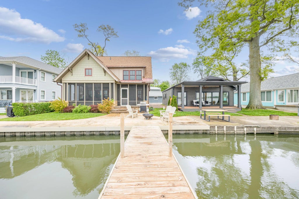 Lakefront Luxury on Hickory Ave—Your Dream Home Awaits! Welcome to 7733 Hickory Ave., Russells Point, Ohio—where breathtaking sunsets and open-water views set the stage for lakeside living at its finest. This spacious 3-4 bedroom home offers an unparalleled blend of comfort and elegance, featuring a gourmet kitchen designed for culinary excellence with Created Hardwood Design Cambria dining room table included. Other furniture is negotiable. A fabulous master suite complete with an amazing master bath. Cozy up by the stone fireplace, or step outside to the patio at the water's edge, perfect for entertaining or enjoying peaceful moments. Don't miss the attached, screened porch, (an additional 373 sf.), perfect for enjoying coffee in the morning. Brand new wood walk out dock, perfect for docking your boat. Installed in fall of 2024. New roof in 2024. Don't miss this home. One must see it to believe just how beautiful it is; inside and out! The home is currently being used as an Airbnb. The average income for 2023/2024 was $66,000. Don't miss this rare opportunity to own a slice of lakefront paradise! Schedule your private showing today!!