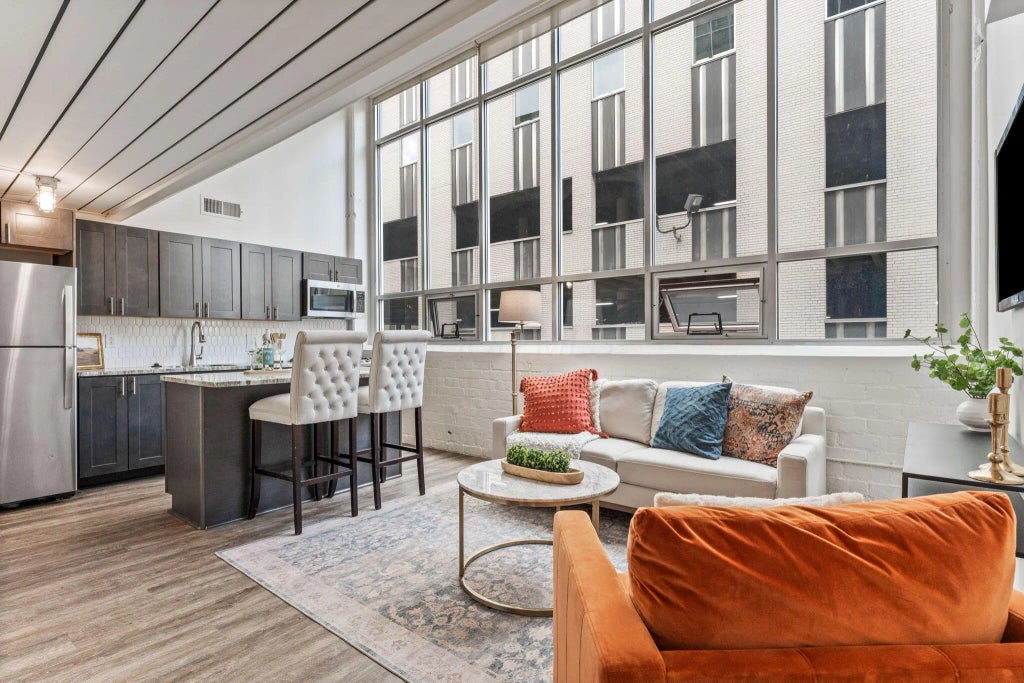 Come check out the gorgeous Unit 211 at Sixty Spring, a historic building in the ever popular Downtown Columbus! Unique 2 story condo offering oversized windows to allow for tons of natural light to pour into the space as well as new flooring throughout. The renovated kitchen includes an island with breakfast bar for 2, beautiful backsplash, as well as stainless steel appliances (refrigerator, gas range, dishwasher, and microwave). Second story loft overlooking the living area, can be utilized as a second bedroom, office, or flex space. Both bedrooms have a private full bathroom and a walk-in closet with new glass shower doors and vanities. Convenient in-unit laundry, washer and dryer included! Enjoy the building amenities such as the rooftop patio with grill and city views, a lush gated courtyard, coffee bar in the lobby, elevators and secured key fob entry. Includes one assigned space in the secured, underground parking garage. You may not need your car with all of the amazing walkable destinations nearby - Wolf's ridge, Jackie Os, Pins Mechanical, Elevator Brewery, Cure Coffee, Freedom a la Carte, Pros Fitness Club all within a 5 minute stroll & so much more throughout Downtown! If you're heading to the Short North - the North Market & Convention Center are just .6 miles about a 14 minute walk. This home is perfect for the urban wanderer who wants to live in security & style, maintenance free! Open House this Sunday, 8/24 11am-1pm!