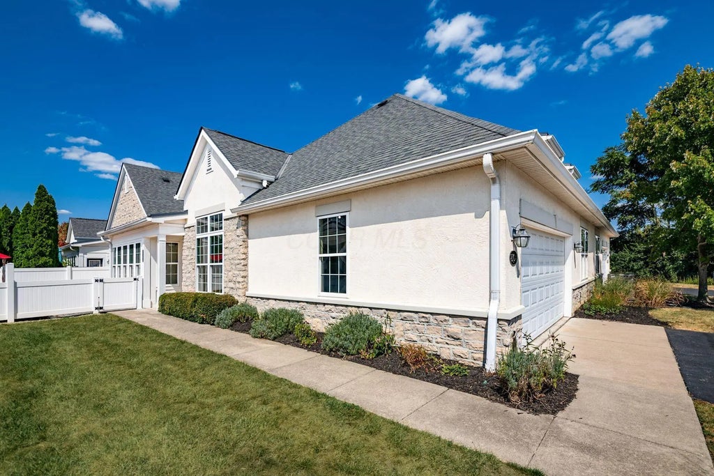 Looking for an updated condo that lives like a single family home? Step inside and enjoy natural light from the walls of windows in the solarium with ceramic tile floors, a perfect place for your plants. Interior wall has double sided gas log fireplace with large mantle and 3 large openings above that transfer the light to the large great room with wood floors and soaring ceiling, plus a flexible dining area that could accommodate whatever size table you have. Kitchen with island that has eating bar on one side and granite countertops. Lots of cabinets and drawers in island and a large SS single bowl under mount sink, perfect for entertaining or preparing that special recipe. New SS appliances, tall upper cabinets and large double bowl main sink with disposal. The spacious primary bedroom with new LTV flooring has vaulted ceiling and tall window w/transom with louvered shutters for privacy. Primary dressing room/closet has wood shelving and racks as well as built-in drawers. Primary bath with ceramic tile floor, double vanity with white cabinetry and double sinks. Tall toilet with storage cabinet above, spacious shower with seat and clear glass walls. On the other side of the great room is the 3rd bedroom or office/den with French glass double doors, vaulted ceiling and new flooring. The laundry room has a deep tub sink, front loading washer and dryer, glass door cabinet and 2 open shelves with room for additional storage. Hall bath has tub/shower, large vanity, closet, tall toilet and mirror. Spacious second bedroom with double windows, double door closet, and new flooring. Door from hall to 2 car garage with pull down stairs to extra storage area and utility closet for the 2 year old furnace, central air and hot water heater. Double garage door has opener. One of the larger oversized patio spaces is off the solarium near the front door.