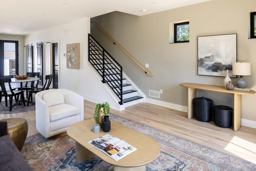Discover modern luxury in Columbus's beloved Clintonville neighborhood with this stunning two-story home. This thoughtfully designed 1,531 square foot residence offers two bedrooms + a den/study/nursery, two and one-half baths, and is move-in ready. 2 ½ blocks from Yellow Springs Brewery and Taproom, 5 blocks to Studio 35, 4 blocks to Glen Echo Park, 1.1 mile to High St. Designed by Timothy Hawk, FAIA, CEO of WSA Studio—an AIA Ohio Gold Medal firm renowned for award-winning designs throughout the region. This home serves as a prototype, mirroring the adjacent property at 581 Crestview Road, showcasing innovative design principles from one of Ohio's leading architects. Premium Features & Finishes Open-concept first floor flooded with natural light through floor-to-ceiling Marvin windows • Hardwood flooring throughout the main living areas • Gourmet kitchen with stainless steel appliances and elegant quartz countertops • High-end bathroom fixtures and finishes • Full basement providing additional storage and potential living space • Private fenced yard perfect for entertaining or relaxation Energy Efficiency & Modern Conveniences include • High-efficiency gas furnace and air conditioning system • Energy-efficient tankless water heater • LED lighting throughout • Two-car garage with automatic door operator • 220V outlet in garage for electric vehicle charging • Sustainable design principles reflecting modern environmental consciousness.