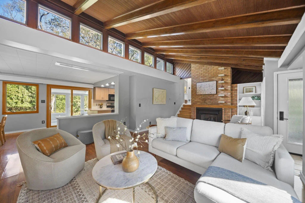 ***Lifestyle Opportunity! Built in 1949, this proto-mid-century modern retreat features vaulted cielings with wooden beams, clerestory windows and a brick fireplace anchoring the heart of the home. Sunlight pours in from multiple angles and walls of windows creating spaces that are filled with life. Outdoor living has been enhanced here under the current ownership, with expanded treetop deck and enlarged patio at the rear to enjoy the 1.3 acress all your own. The three season room is pictured with a lounging bed because the connection to nature in the space is quite peaceful...a feeling you do not find in a traditional neighborhood. Though the property abuts Dublin Road, the sounds of nature are audible and what provides a grounded feeling of home. Interior spaces are insulated by the thoughtful and flexible design layout. One TWO car attached garage flanks the Western edge of the home and find the ONE car attached garage and the carport down the 2nd driveway...a hidden gem of a pathway perfect for play and parking and storing toys, tools, tractors and finds of all kinds!