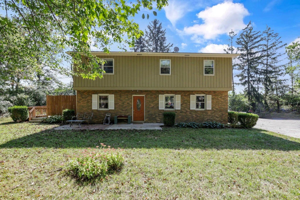 Experience full privacy and quiet on a secluded cul-de-sac with over an acre of mature trees, garden space, and natural beauty just minutes from shopping and dining. Step inside the main level where durable vinyl plank flooring, installed in 2022, flows throughout and is complemented by custom built-ins that blend function with style. A flexible laundry layout allows installation on either level, with the current set included in the sale. The heart of the home adapts beautifully to multi-generational needs or future conversion. Potential for a dual kitchen hookup, two furnaces, and separate AC zones create opportunities for independent living or creative configuration. Upstairs, hardwood floors lead you through three main bedrooms and a bonus room ideal for an office, nursery, library, or studio. The primary suite centers around a brick fireplace, a low-maintenance focal point that adds warmth and character. Large windows provide tree-lined views, filling the rooms with natural light and a peaceful atmosphere. Outdoor living is equally inviting. The back deck offers a quiet perch overlooking mature trees, established garden space, and a nearby pond, making it the perfect spot for morning coffee or evening reflection. Recent updates include a remodeled upstairs bathroom, exterior paint, and a new furnace with dual-zone HVAC installed in 2024. With over an acre to expand or personalize, this property offers privacy, versatility, and room to grow.