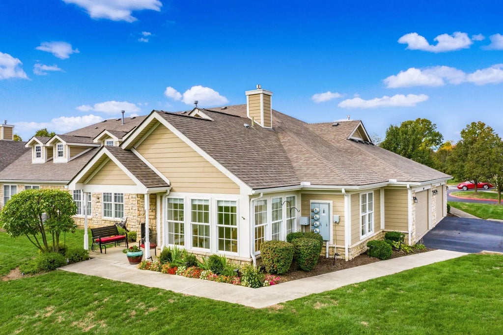 Enjoy peace, privacy, and nature in this updated three bedroom, two and a half bath home, all on one level. Sitting high on a hill, this east facing home overlooks rolling pasture, a pond, and forest filled with wildlife. The large front porch is twice the size of other models and is perfect for morning coffee or relaxing evenings. Inside, everything feels fresh and spacious. The home was completely painted and received new flooring just three years ago. The kitchen is three feet larger than other models and features quartz countertops, glide out shelves, a five foot lighted pantry, and newer stainless steel appliances. There is also a large laundry room, separate from the kitchen, and a convenient coat closet off the garage. Enjoy the bright all season sunroom with heat and air conditioning while taking in the beautiful view. The roomy primary suite has a six foot quartz vanity with double sinks, updated fixtures, and a large custom walk in closet with a motion sensor light. A private guest suite includes its own full bath. All bathrooms feature quartz counters and new faucets. Major systems have been updated with a three year old water heater and a two year old furnace and air conditioner. Only twelve homes of this model exist in the community. This rare property offers comfort, privacy, and beautiful scenery all in one.