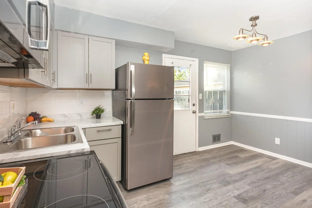 This tastefully updated end unit is the ideal low maintenance starter home. There is so much to enjoy - new vinyl tile flooring, contemporary lights, brand new stainless steel appliances+ kitchen cabinets & countertop + bathroom vanity + a gorgeous tub to soak in after a long day. There is also the private enclosed patio space and additional space in the full basement. This condo is well situated convenient to highways, shopping and restaurants. You need to see this.
