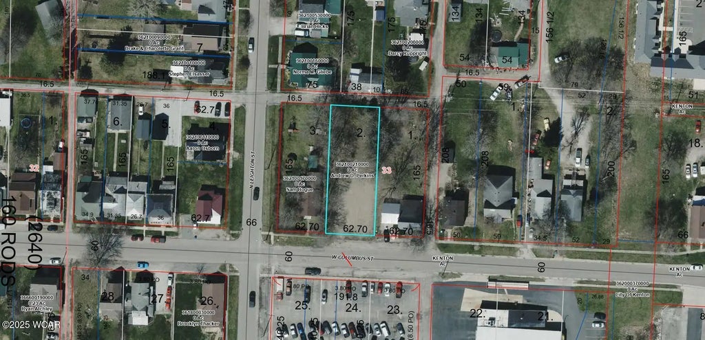 63 X 165 Lot located on Columbus street in the city of Kenton. Buyer should check with city of Kenton Zoning for any building related questions.